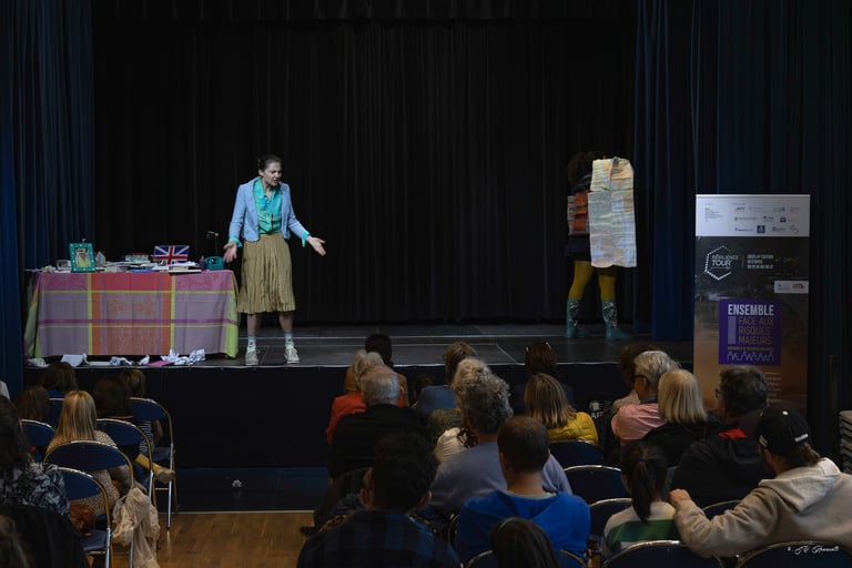 En immersion dans votre structure/ville, nous co-construisons un projet de théâtre forum sensibilisant un public à des sujets qui touchent une commune, un territoire, ses habitants, afin d'éveiller les consciences et être acteurs/trices du changement du monde de demain.
