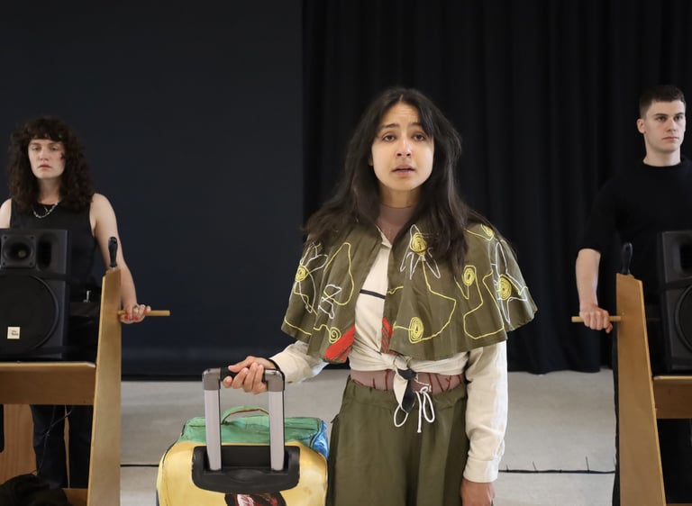 La transformation de tous ces déplacements forcés en force créatrice, en allégorie créative d'une expédition en mer à la recherche d’une valise perdue, un voyage qui rend à la navigatrice la liberté de ses déplacements sur Terre.